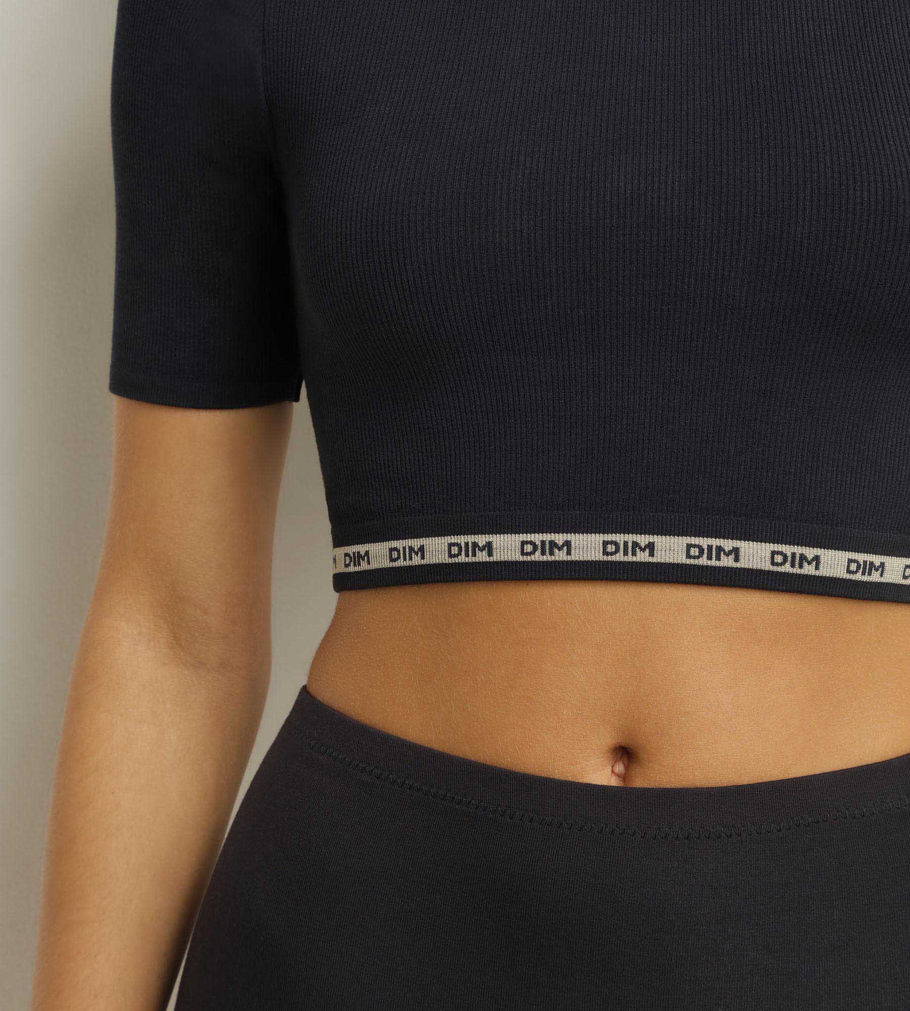 Bougez avec aisance et modernité grâce au t-shirt femme Dim Icons Seamless, en microfibre côtelée Noir sans couture !